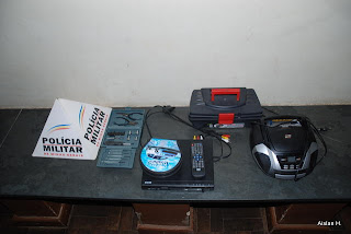 Ao fazer um patrulhamento pelo local os policiais avistaram de três menores em atitude suspeita por causa da grande quantidade de produtos eletrônicos.Um deles conseguiu fugir e os dois irmãos de 14 e 17 anos foram apreendidos.Com os dois os policiais encontraram um DVD com controle remoto, micro-system, 1 porta CD,e 2 caixas de ferramentas, eles disseram que era de uma tia.