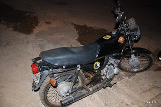O proprietário de uma motocicleta acionou a PM relatando o furto do seu veículo e quando os policiais ainda dialogavam com este, visualizaram a motocicleta com um ocupante passando nas proximidades.