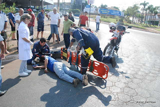 Adão da Rocha Pinto, 41 anos transitava em sua motocicleta 150 de cor vermelha por volta de 09h20 desta segunda-feira (12), quando teria perdido o controle da direção ao contornar o balão da Praça Champagnat com rua João da Rocha Filgueira vindo a cair.Uma equipe do Samu foi até o local prestar socorro à vítima. Os socorristas identificaram que Adão estava com dores na coluna e escoriações por todo o corpo.