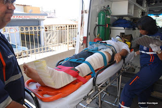 Com o impacto da batida Antony Frederico Deus de 20 anos teve uma suspeita de fratura na perna esquerda e foi socorrido por uma equipe do SAMU para o HRAD.