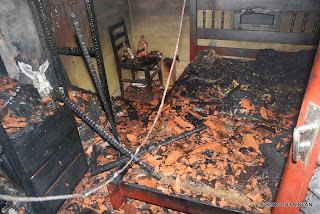 A casa fica na rua Guilherme Vilela, no bairro São José Operário. Uma mulher que estava no quarto ao lado ouviu os estalos do fogo e pediu ajuda. Os vizinhos acionaram o Corpo de Bombeiros que chegou a tempo de controlar as chamas antes que outros cômodos do imóvel fossem atingidos. O prejuízo foi grande.