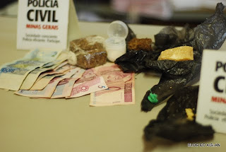 Com eles, os policiais apreenderam 4 tabletes de maconha, uma pedra grande de crack e 6 pedras menores prontas para serem comercializadas. Os policiais ainda encontraram uma porção de cafeína que seria usada para misturar no crack e R$46,00 em dinheiro.