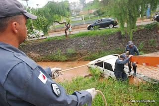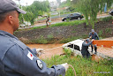 O carro antes de cair teria derrubado uma árvore e bateu em uma segunda árvore e capotou antes de cair no córrego.