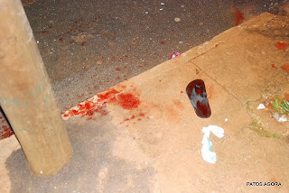 Marcas de sangue ficaram pela rua e pela casa. O corpo de bombeiros foi acionado porém ele ainda correu até a casa de um amigo que mora perto que o levou para o hospital regional com ferimento na perna.