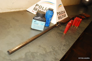 Ao chegarem no local, os militares deparamos com dois indivíduos em uma motocicleta. Ao notar a presença policial, tais indivíduos evadiram-se em um matagal, deixando para trás um saco contendo uma espingarda calibre 28 e munições.