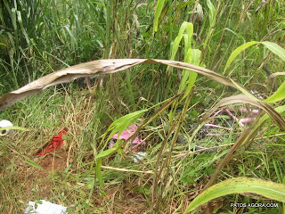 O operador de patrola fazia a limpeza do local quando viu uma bicicleta caída no meio do mato, ele sentiu um cheiro forte e entrou e viu o corpo caído.