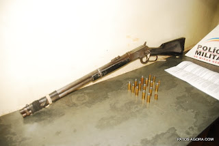 A policia militar cumprindo mais um mandado de busca e apreensão apreendeu uma arma de fogo na tarde desta sexta-feira (17). Uma carabina Whinchester ponto 44 foi encontrada atrás de uma telha brasilite com mais 9 munições intactas.