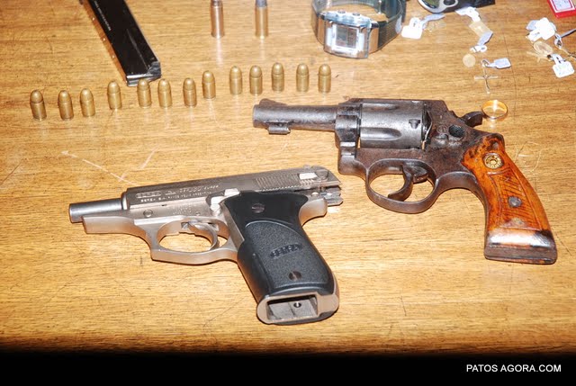 Foram apreendidos uma pistola calibre 380 com 13 munições, um revólver calibre 38 com duas munições, uma mochila com vários cordões para amarrar as vítimas. Na casa deles na Rua Rio Grande do Norte os policiais encontraram dinheiro, um canivete, e um bastão com a seguinte escrita: "Cuidado com o Chico Doé". Os dois estavam com dois capacetes porém eles não disseram se estavam em uma motocicleta ou se havia dois comparsas os aguardando. Os dois foram encaminhados para delegacia para demais providências.