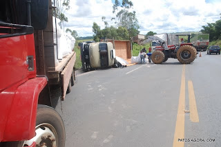 O caminhão Mercedes carregado com adubo teria parado na subida entre no KM 411 da BR-365.