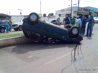 Um Fiat/Uno capotou na Avenida João Batista em Carmo do Paranaíba, quando um GM/Vectra que estava estacionado saiu e não percebeu a aproximação do Fiat/Uno.