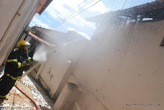 Um principio de incêndio teria começado a partir de um curto circuito nos fundos de uma casa na Rua Ana de Oliveira.