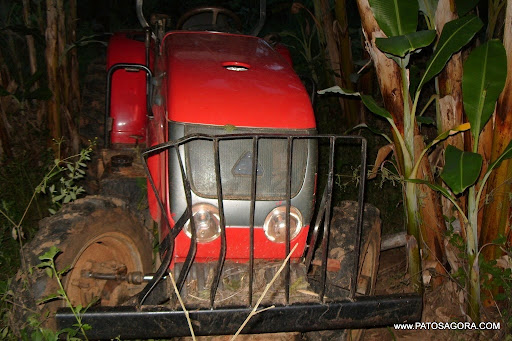 O trator que foi furtado na cidade de Patrocínio foi removido para o pátio. Uma máquina de pulverizar não teve como ser retirada devido ao terreno e no local não ter um trator com uma tração que o retirasse do local sendo retirada no dia 28/03.