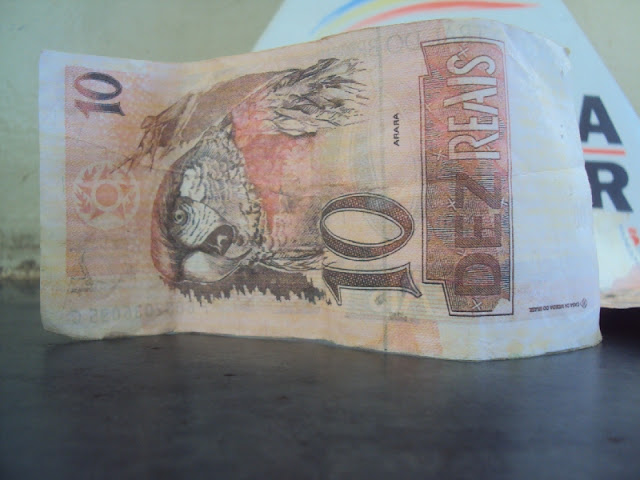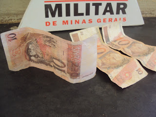 Em São Gonçalo do Abaeté, a policia Militar foi acionada pela vitima T.G.L. de 24 anos, o qual alegou que ao efetuar o pagamento ao vendedor ambulante/autor Fabio Pereira Junior 29 anos, com uma cédula de Cinqüenta Reais, recebeu de troco três cédulas de Dez Reais falsas.
