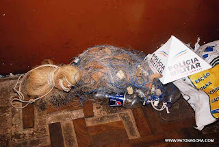 Ontem, por volta das 14 horas, os militares do policiamento ambiental, mediante denúncia anônima de pesca em local proibido, compareceram ao Rio da Prata, na zona rural de Presidente Olegário. No local, a equipe policial deparou com quatro homens praticando pesca com uma tarrafa e uma rede. Os mesmos haviam capturado um total de 2 kg de pescado diversos, como traíra, cascudo e lambari, sendo que um dos exemplares estava abaixo do tamanho mínimo permitido.