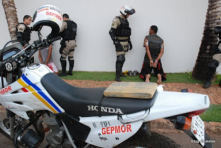 De acordo com o Sd Blaiton, os policiais viram a dupla em uma motocicleta Honda/Titan vermelha em atitude suspeita e, em uma ação rápida, fizeram a abordagem. Sem tempo para reação, a dupla foi capturada. Na cintura de Júlio, os militares encontraram um tablete de maconha com cerca de 1 kg da droga. Dois cheques e certa quantia em dinheiro trocado também foram apreendidos.
