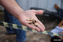Foi constatado que o morador desta casa havia dado fuga aos autores e que ele os autores haviam evadido pelos fundos. Em buscas na casa foi encontrada uma arma de fogo e uma porção de maconha que foi apreendidas. Os autores foram identificados como sendo um adolescente de 16 anos e um outro indivíduo de 21, que não foram encontrados. Duas motocicletas, a usada no crime e outra que estava junto dela foram apreendidas e encaminhadas ao depósito.