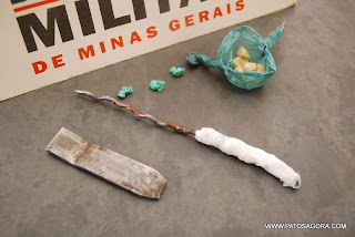 Seis pedras grandes de crack e 3 pedras pequenas, de crack foram localizadas dentro da cela onde estavam três presos. Um chuço também foi localizado dentro da cela.