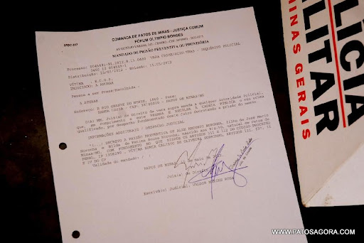 Eles foram abordados e foi solicitado o apoio de uma policial feminina, que deu as buscas na menor e localizou uma porção de maconha e R$ 44,50 reais em dinheiro. O mandado de prisão se deu por causa da morte de Elmir Calixto de 24 anos foi executado em um local escuro, na travessa Marlene Alves Caixeta, e foi o 27° homicídio que aconteceu o ano passado em Patos de Minas.